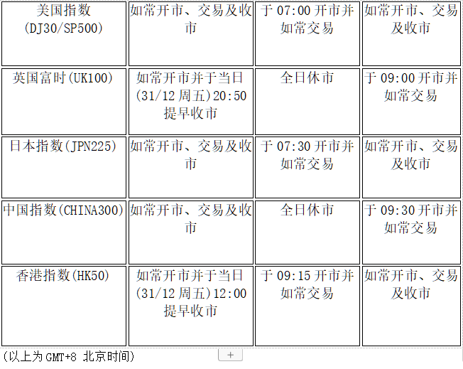 由于元旦假期影响,本公司以下产品的交易时间将于2021年12月31日(周五)至2022年1月4日(周二)作出如下安排,敬请留意。